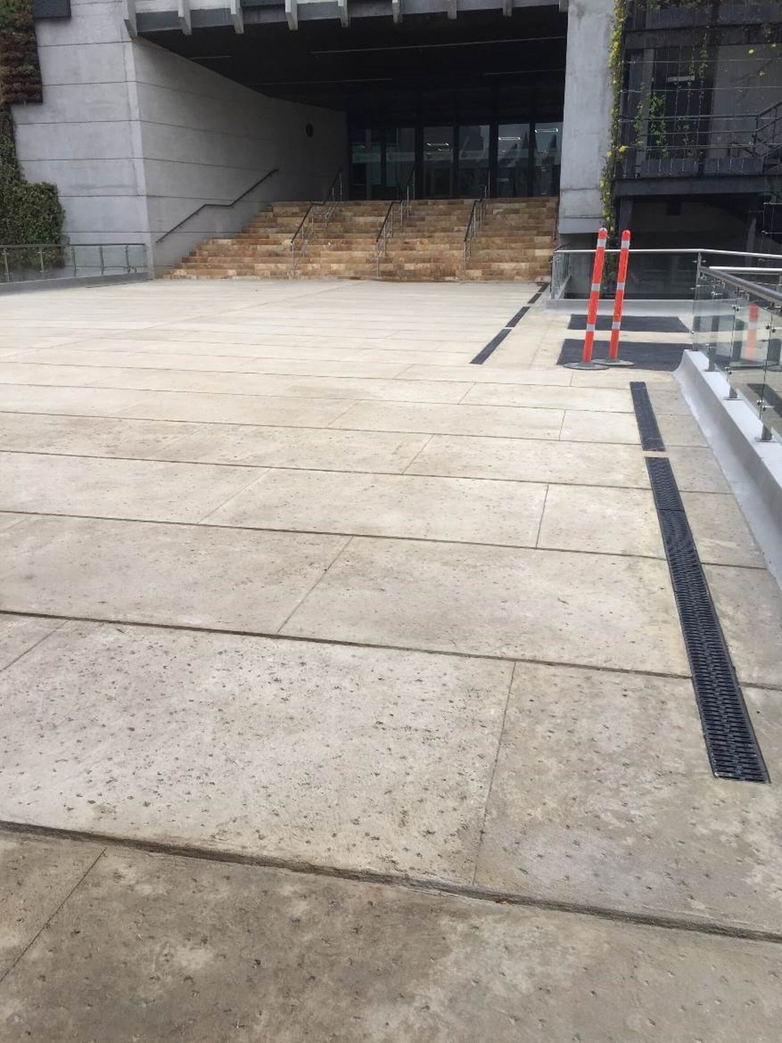 Fundición de concreto texturizado a color con desagües en cárcamos descolgados
